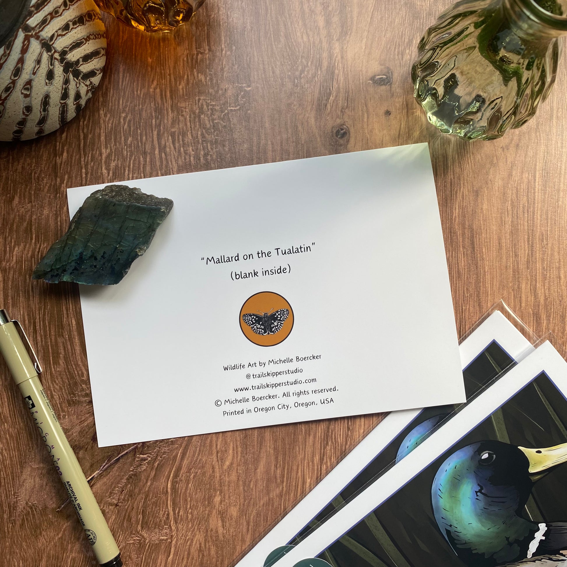 Printed in my home studio on the same premium cardstock as all Trail Skipper cards, with a soft matte finish perfect for writing. Each card features an original digital illustration created from my own wildlife photography. Blank inside for your own message—whether you’re sending a note to a fellow nature lover or keeping it for yourself as a mini piece of art. Includes a white envelope.
